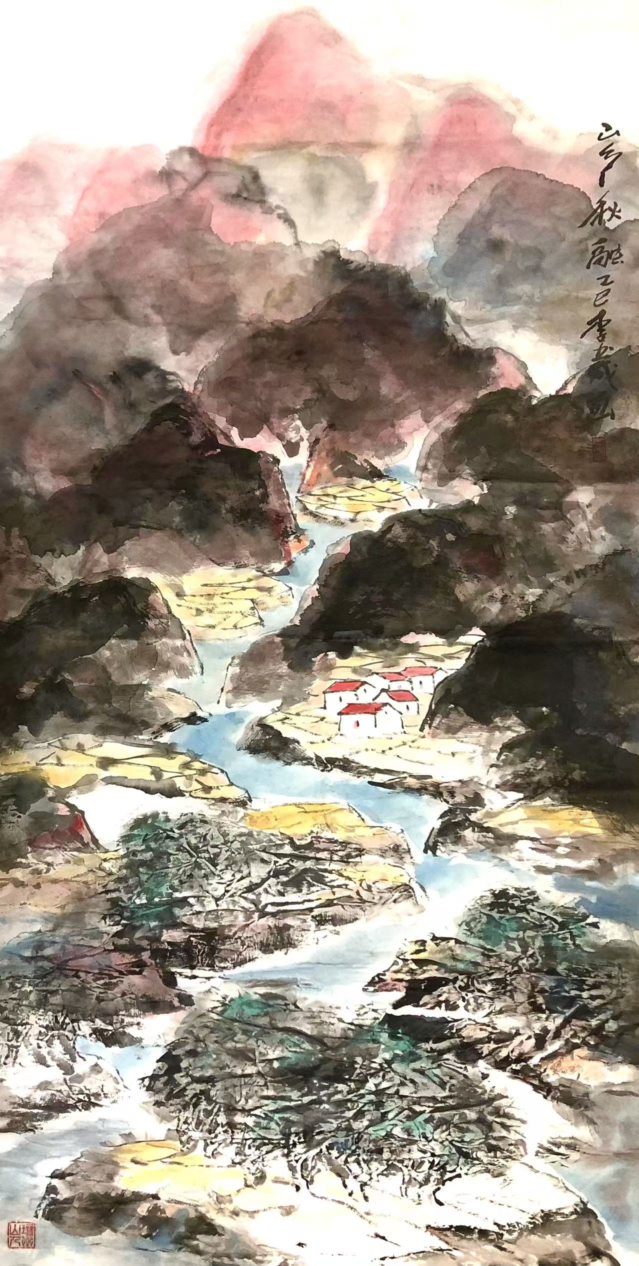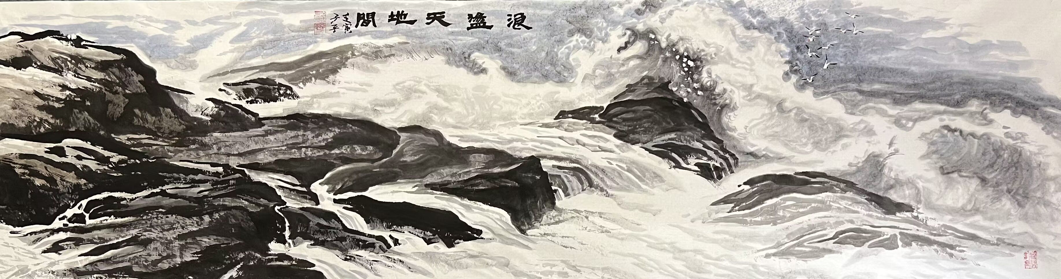 表现人与自然生命感悟、永恒轮迥及真、善、美主题。在承传中国画传统笔墨及书法笔墨内涵上,